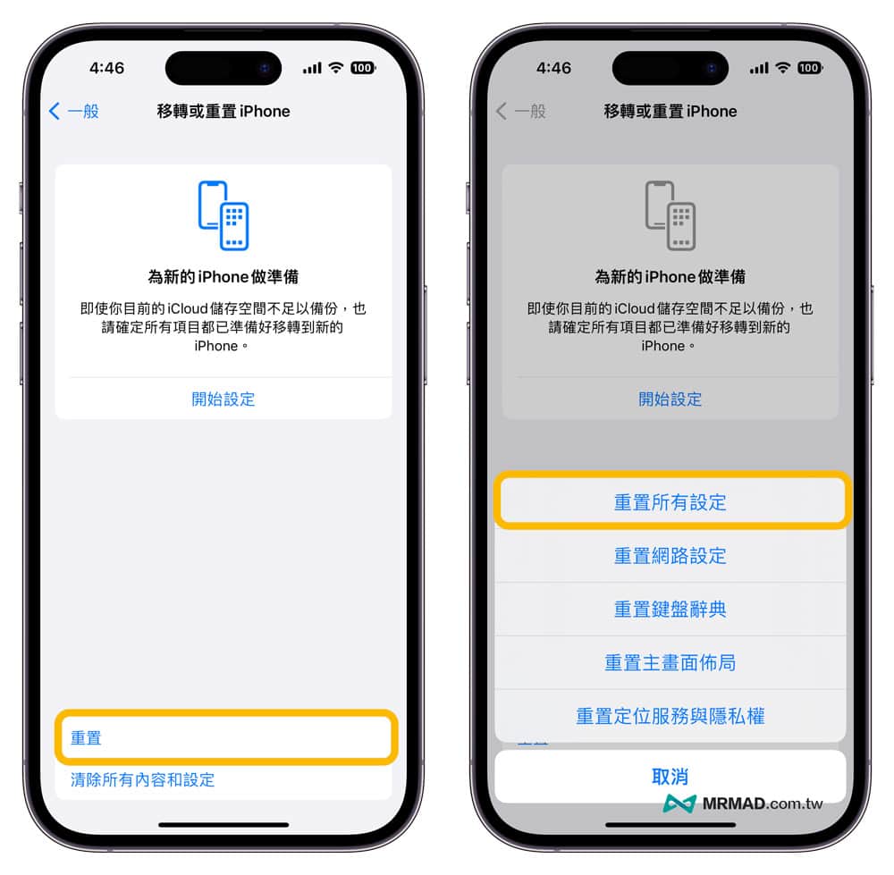 进入重置设定页面后,直接选择「重置所有配置」,就能将 iPhone 所有设置还原到原厂预设状态。
