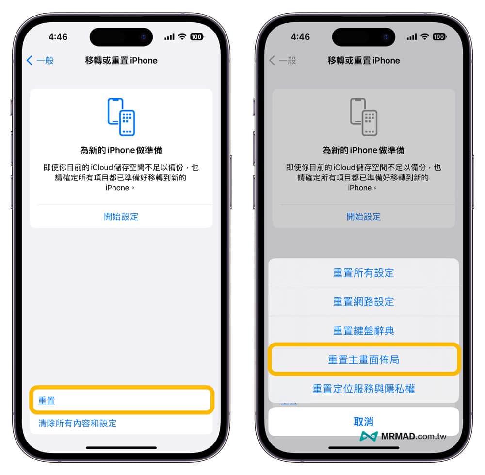 要是感觉 iPhone 内建 App Store 图标真的消失,另一个最快解决方法就是「重置主画面布局」,能够让 iPhone 主画面所有 App 图标再度恢复到原厂预设排列,这功能只会让主画面所有排列或文件夹都被移除,也能解决 App Store 找不到问题,操作步骤如下: