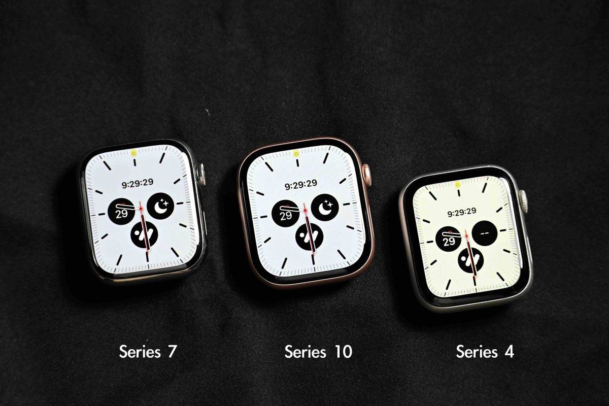 苹果这几年在Apple Watch上秉持的四年一大改,后面小修小补; 但今年Series 10的黑框反而退步了,比起Series 7-9黑边黑了一圈,呈现效果如下: